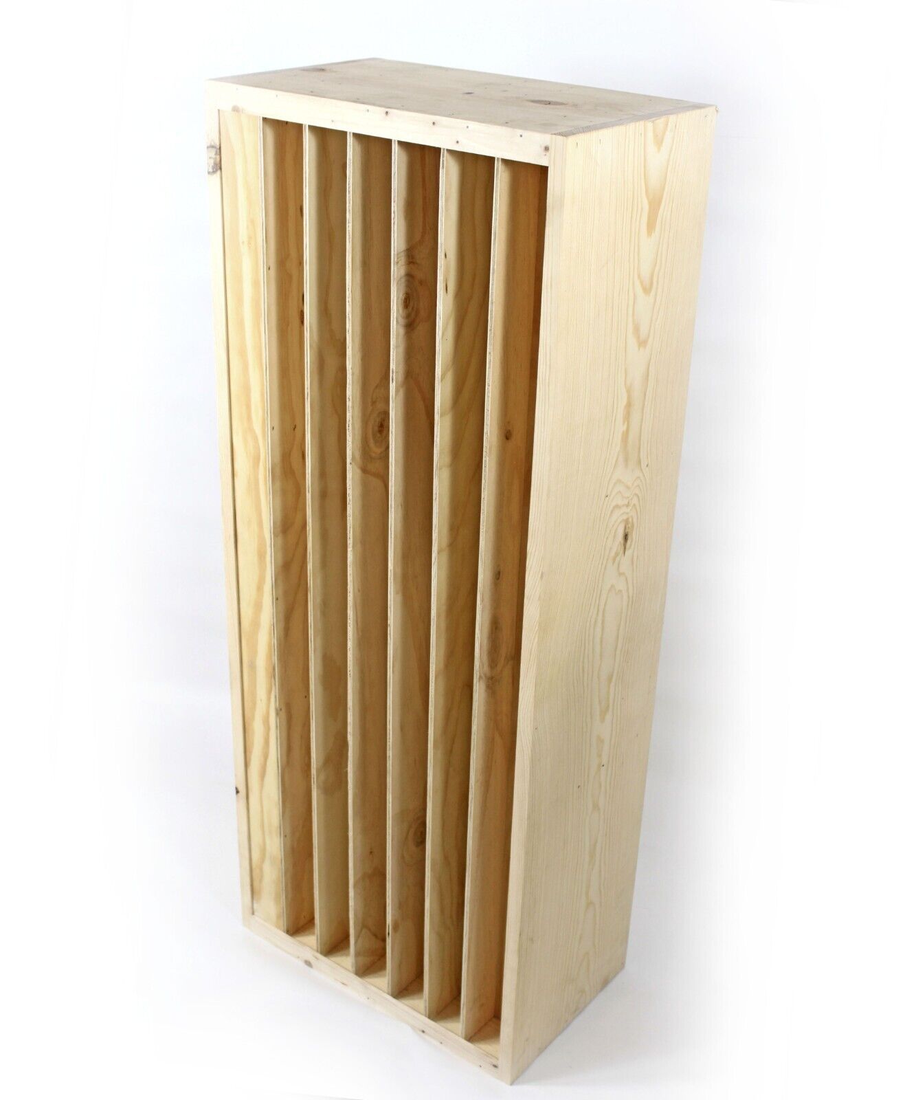 These are a useful tool in your arsenal for acoustic treatment. They can help a small room feel larger and tame flutter echo's without killing all the natural ambience in the room, and these larger units can reach down low enough to help with the low mids. Unlike the smaller units which have a solid wood fin, these, the largest unit we make, require a plywood fin. This does not affect the performance of the diffuser at all, but as you can see in the photos it does affect the aesthetics, as you can see the laminations of the plywood along the front edge.