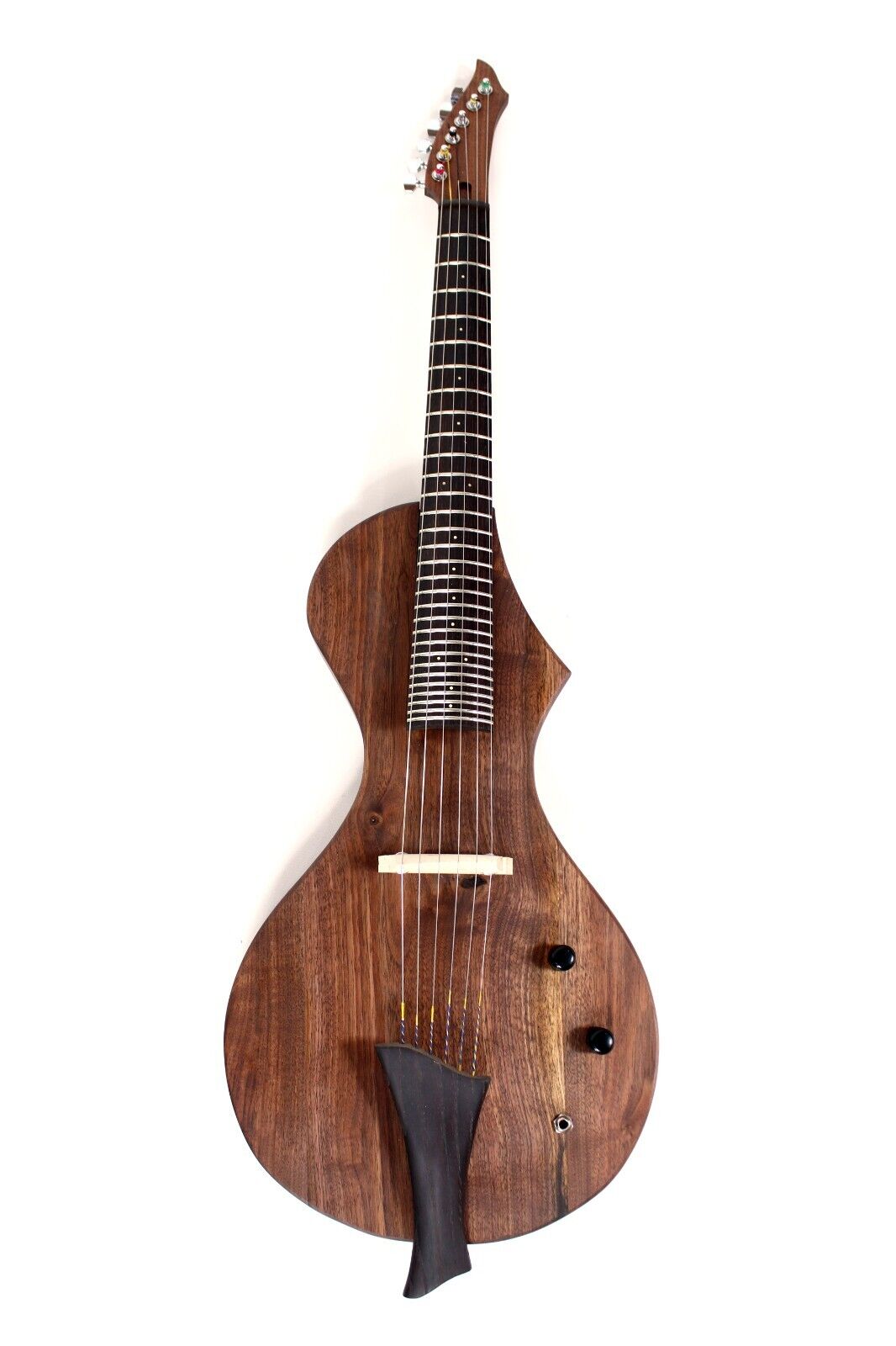 This violatar, like other instruments I have made, was born from personal need. I enjoy writing songs and recording, and I wanted to get realistic solo string sounds at home. I messed around with violin and cello a little bit, but did not have hours a day to devote to practice. I looked into midi options but most solo string vst's sound like junk, and even the really good ones still sound cheesy unless you spend a lot of time automating. That's pretty time consuming, and even after all that effort you can still tell pretty easily that they aren't real strings.