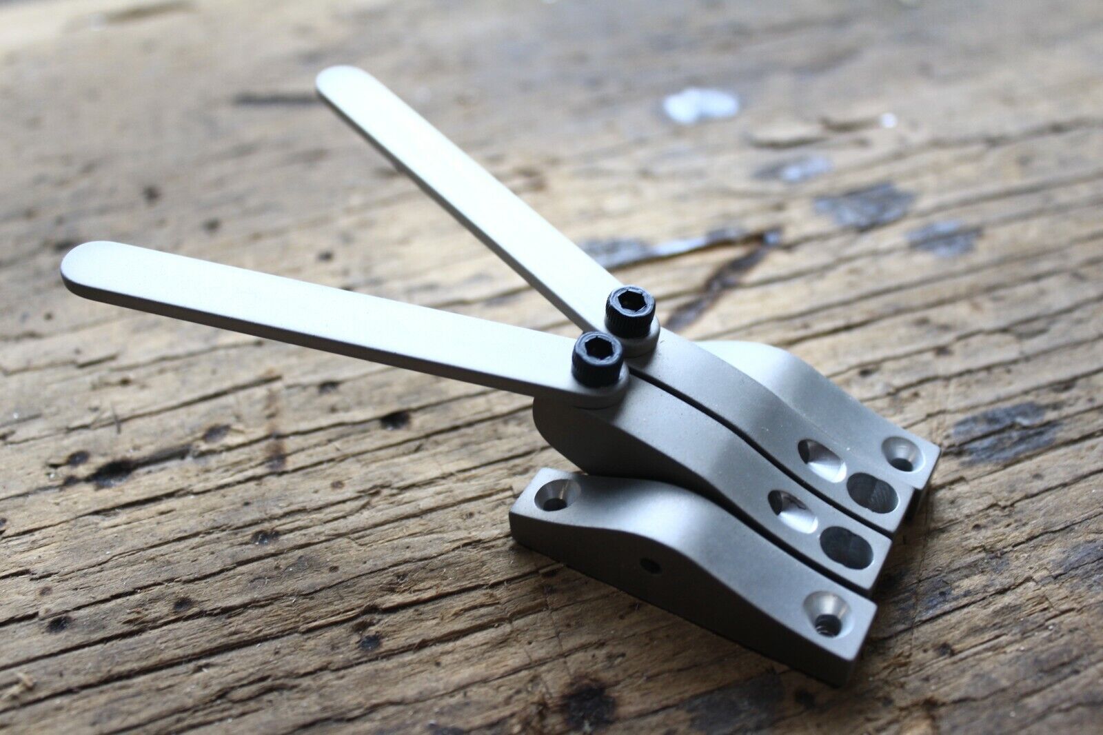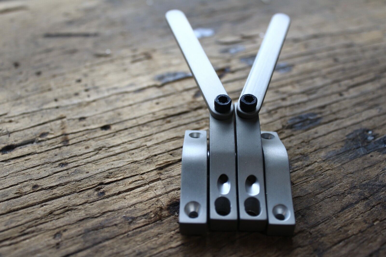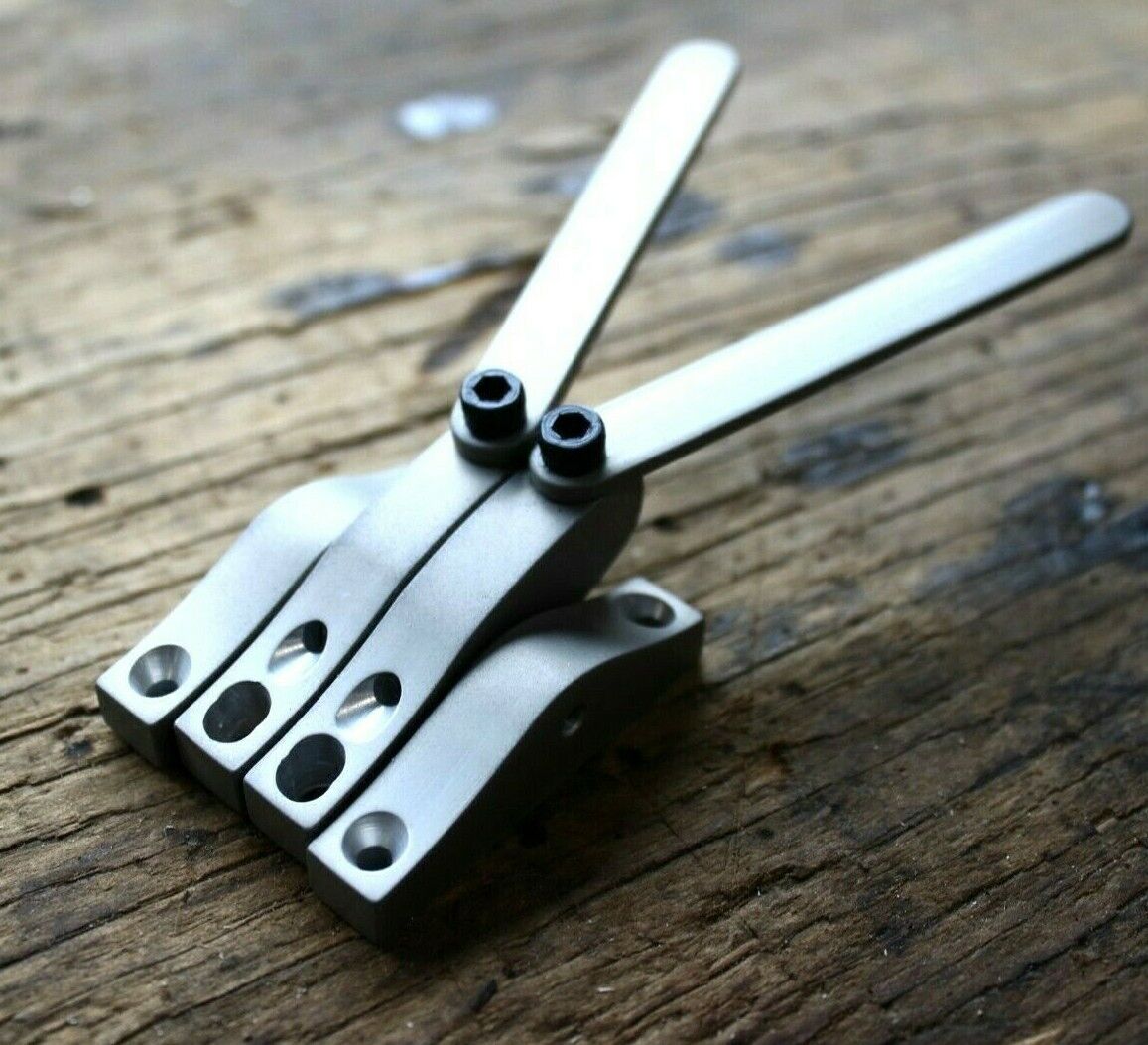 Machined from billet aluminum, and polished to a high gleaming shine, these benders are 100% made and assembled right here in my small Indiana shop. These were designed for lap steels, but should work on just about any electric guitar (albeit it may take a little creativity in some cases).