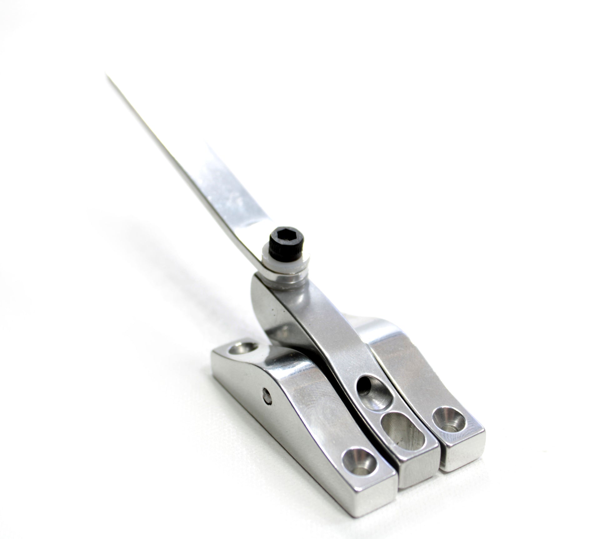 Machined from billet aluminum and polished to a gloss shine, these benders are 100% made and assembled right here in my small Indiana shop. These will work on many lap steels, and just about any electric guitar.